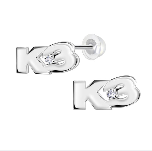 Zilveren oorstekers k3 collectie, k3 logo met kristal.
