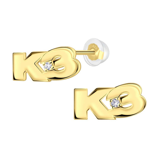 Goldplated oorstekers k3 collectie, k3 logo met kristal.